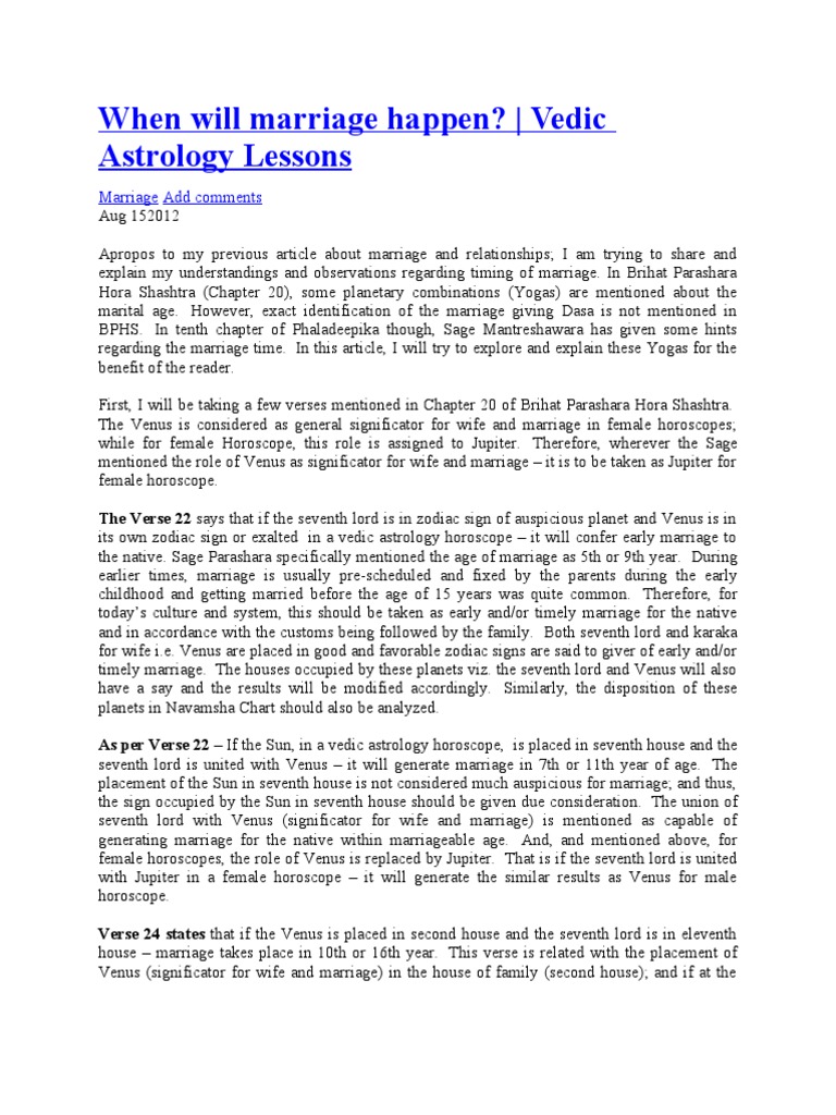 When marriage happen astrology