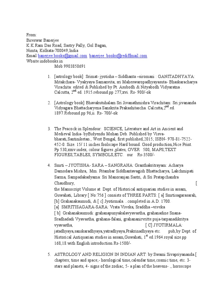 Book List - IKS) India Text Book of Scientific Hindu Astrology (Ancient Wisdom of Seers To Unlock The Doors of Destiny) (In Two Volumes) P. S. SASTRI: History of Ancient India: Portraits of a Nation: KAMLESH KAPUR: The Gurusamhita: An Ancient Text On Weathter-Forecasting (An old and Rare Book) LALLANJI GOPAL: The Metrical Systems of Sanskrit in Ancient India: KUMUDA ...