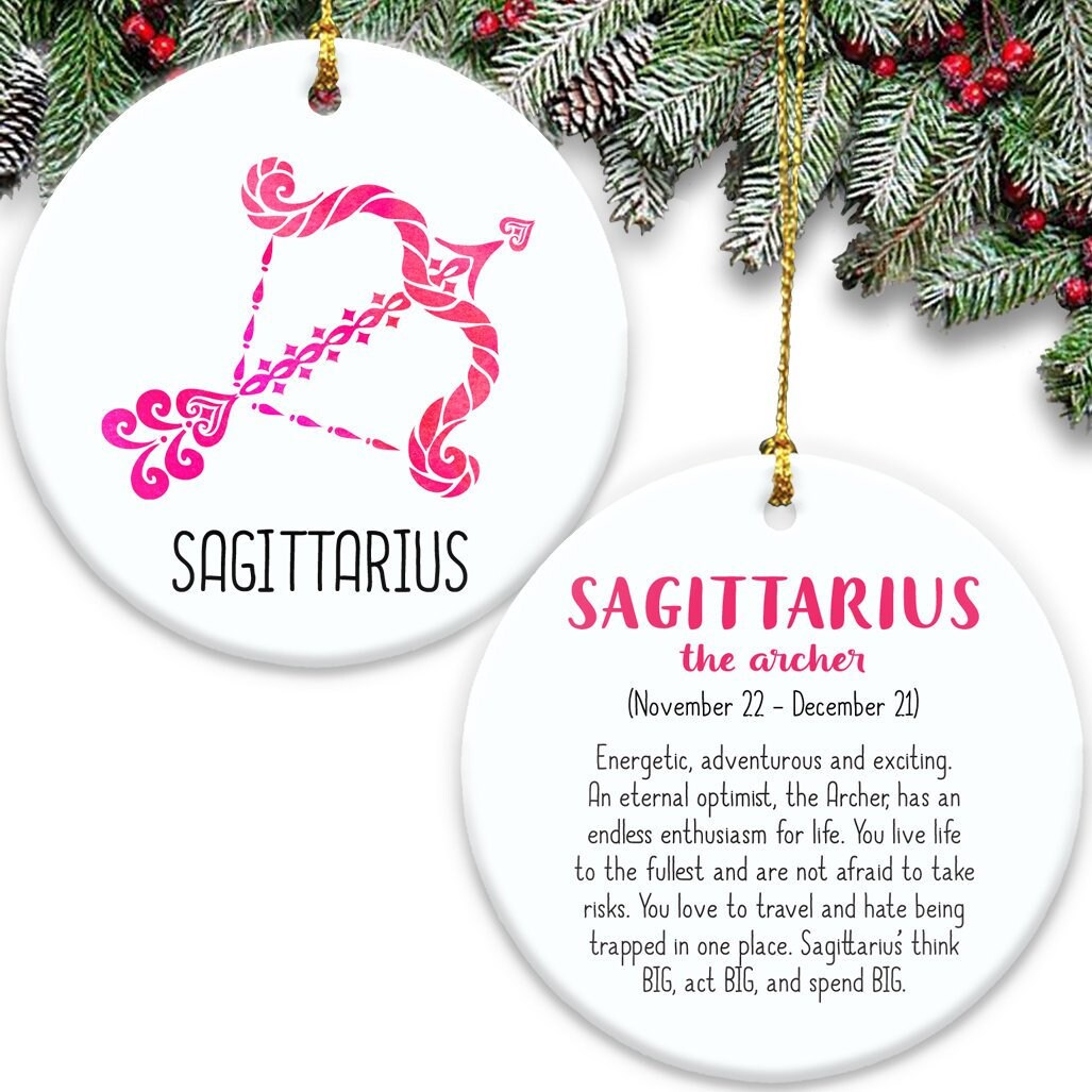 Sagittarius Zodiac Sign Double Sided Ornament - Ceramic The Archer Symbol & Description Astrology Horoscope Fire Sign Pink Gift