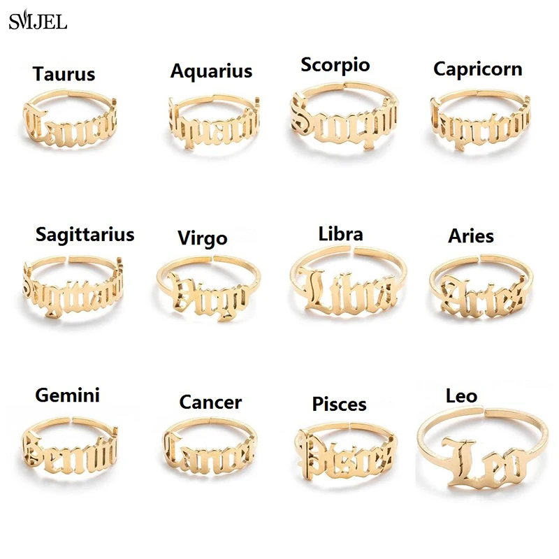 AMYDM Zodiac Sign Ring,Scorpio Women Ring Classic Zodiac Logo Ring Gold Stainless Steel Finger Ring Astrology Jewelry Elegant Birthday Gift Wedding ...