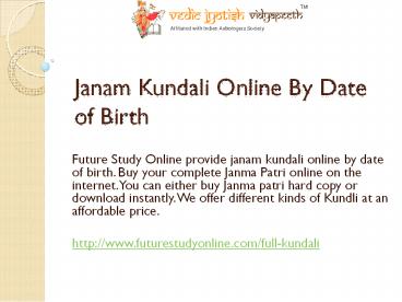 Janam Kundali by Date of Birth Download free Janam Kundali with the help of reliable software, as this is the best Vedic astrology horoscope available online that will give you free astrology predictions. Not only you can get your Janam Kundali in English, but also get your Kundli in Hindi. Free Janma Kundali Software